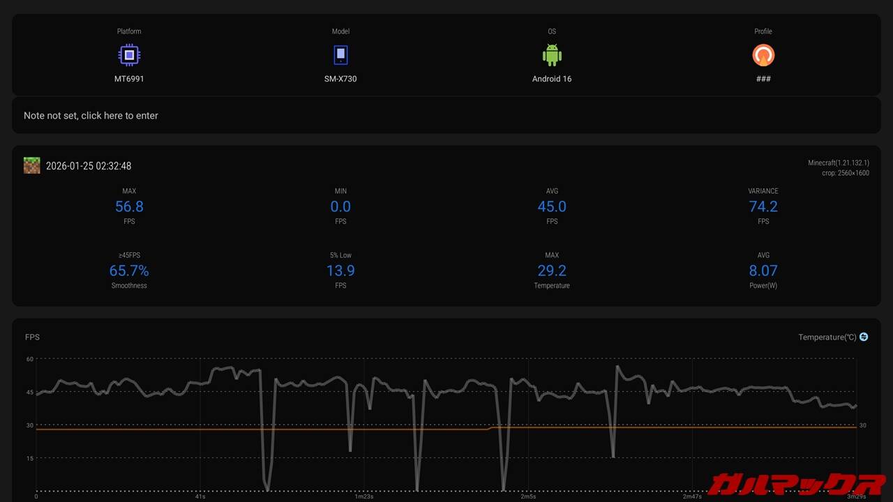 ▼続いて、原神以上に重たくため個人的に気になってたMinecraftのバイブラントビジュアルシェーダー(通称:公式影MOD)での動作も試しました。こっちは平均45FPS。最高56.8FPS。↓
