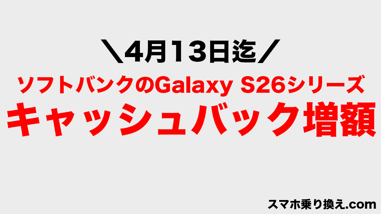 ソフトバンクへ乗り換えを検討していてGalaxy S26/Galaxy S26+/Galaxy S26 Ultraの購入を考えている人は、「スマホ乗り換え.com」を要チェック!!!なんと4月13日までキャッシュバックが増額してます!!!