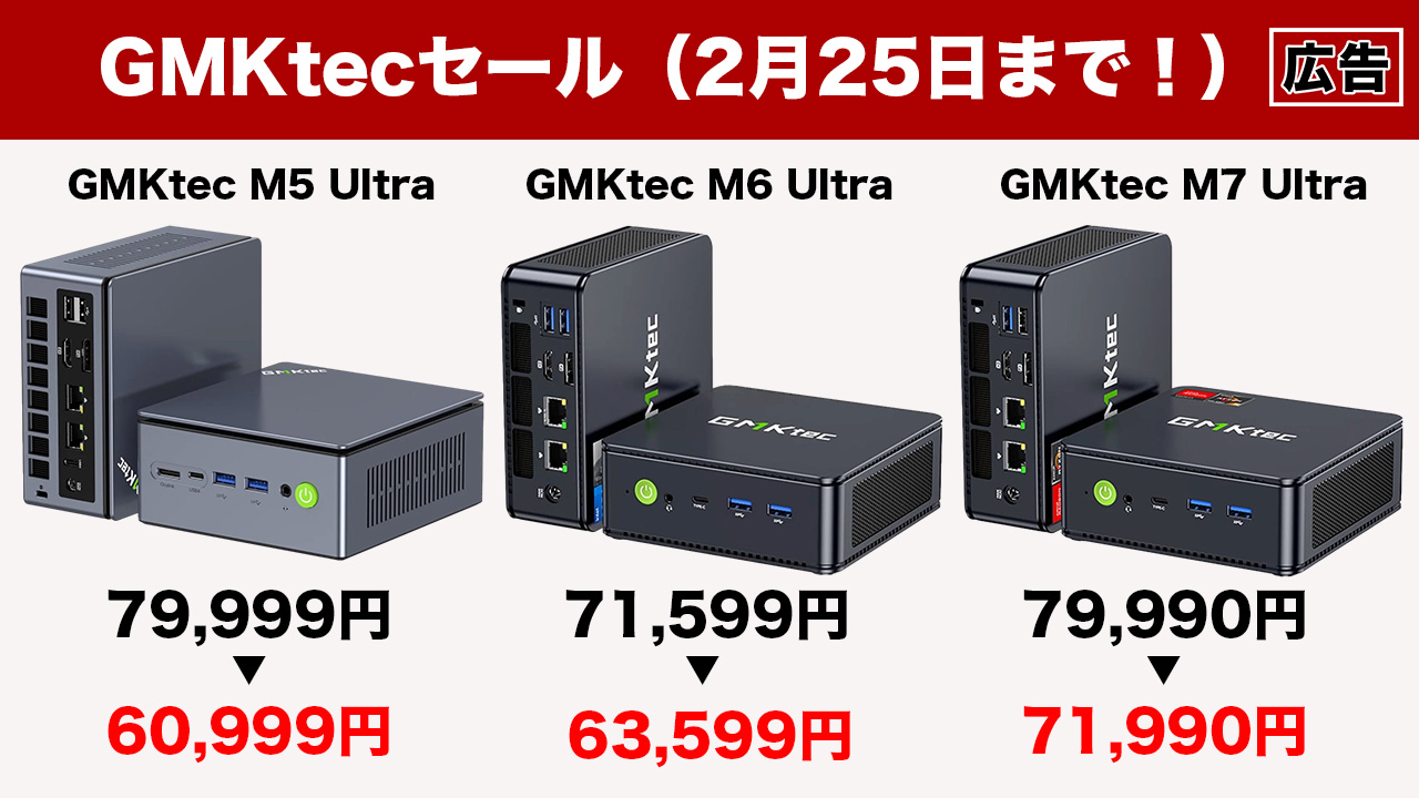 2月25日まで!GMKtecのRyzen搭載ミニPC3種類が楽天市場で安くなっているぞ!