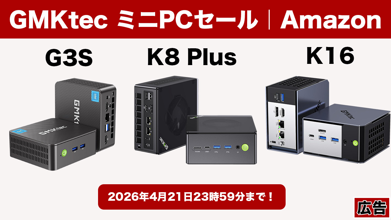4月21日まで!GMKtecのミニPC「G3S」「K8 Plus」「K16」がAmazonでセールが開催!