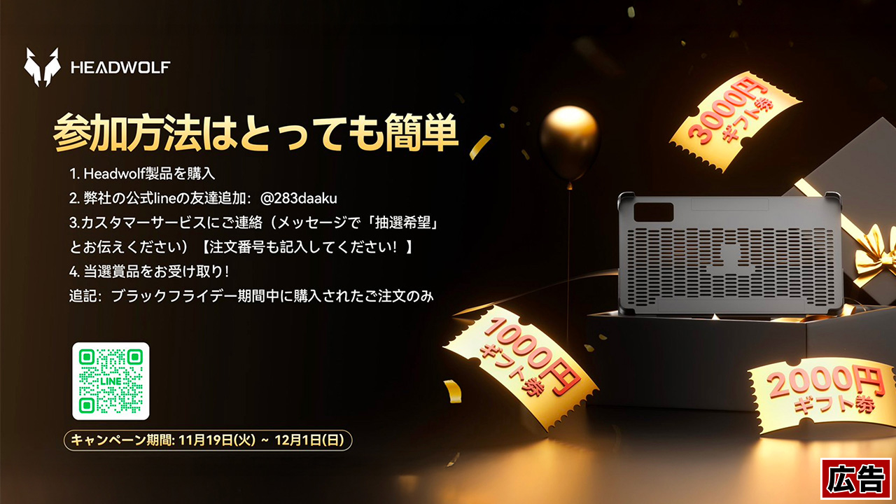 ハズレなし!Headwolfが購入者を対象としたBlackFridayキャンペーン開始!3,000円分ギフト券などプレゼント
