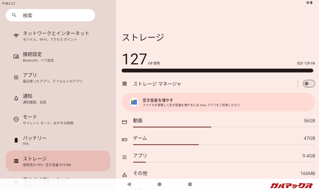 そういえば本機はメモリが4GBとショボい変わりにストレージは128GBも搭載している。最近TABWEE T50という安価なタブレットでストレージ偽装が発生したから念の為ストレージ容量のチェックをしてみる。