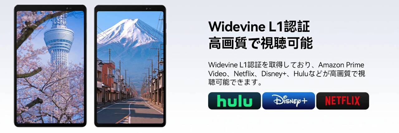 ▼また著作権コンテンツを綺麗に再生できるWidevine L1に対応!AmazonプライムビデオやNetflixも高画質で再生可能なんです。↓