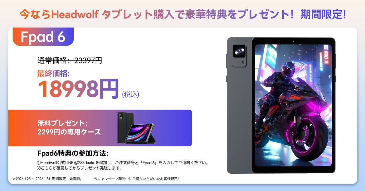 Headwolf FPad6も専用ケースを貰えるけれど、FPad7と同じくHeadwolf公式LINEアカウントと友達登録する必要あり。