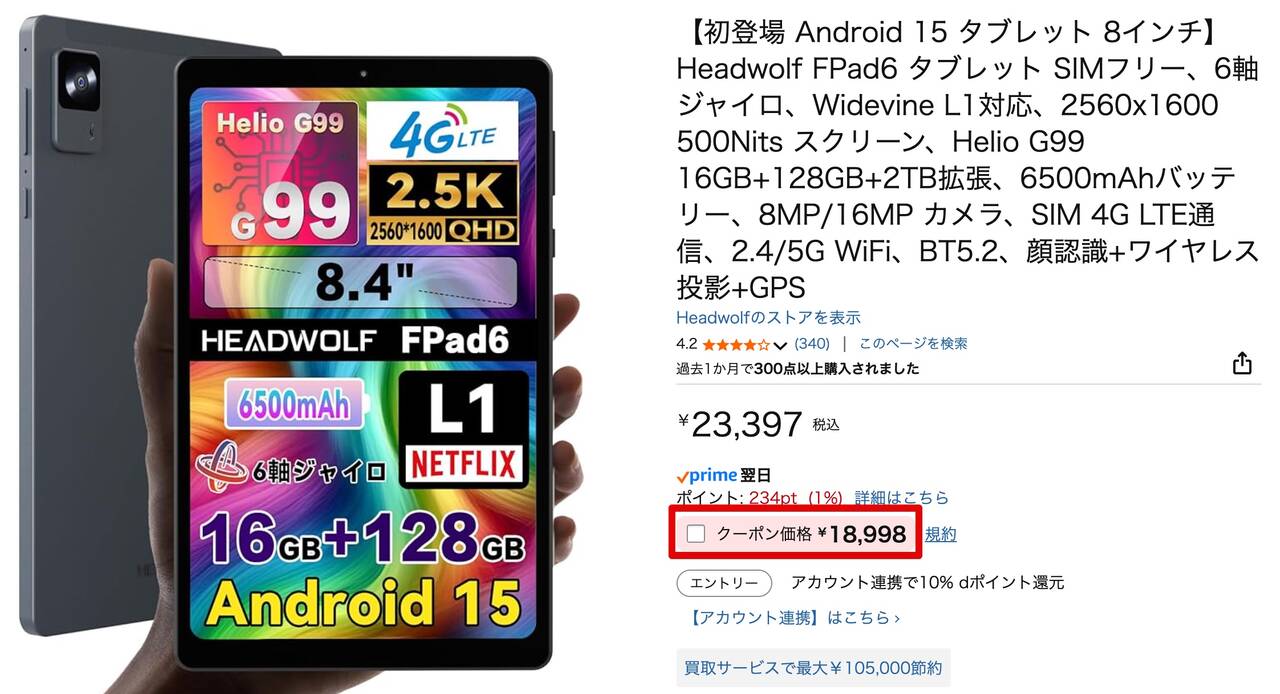 2026年1月27日からAmazonで定期的に開催されるスマイルセールが始まったんだけど、人気のHeadwolfタブレット4機種「Titan 1」「FPad7」「FPad6」「WPad6」もキャンペーンを開始したので購入検討中の人はチェックしてほしい。