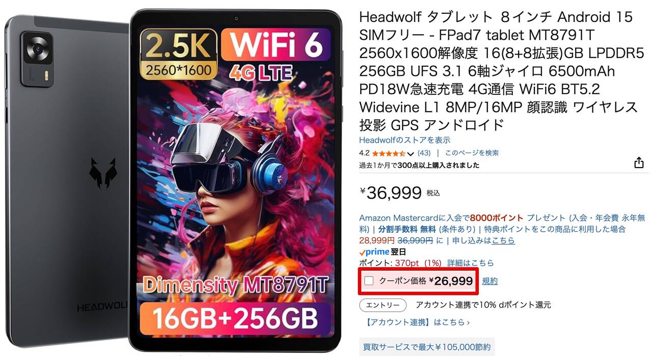 今回のセールでは通常価格36,999円。なんだけどAmazonクーポンを適用することで26,999円で購入できる。