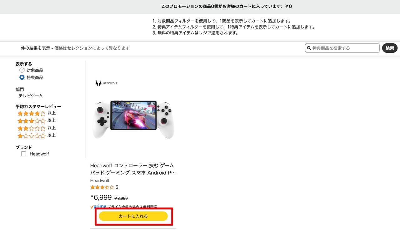 ▼専用コントローラーが表示されるのでカートに入れる。あとはHeadwolf Titan 1と一緒に購入すると0円で手に入るから忘れないように。↓