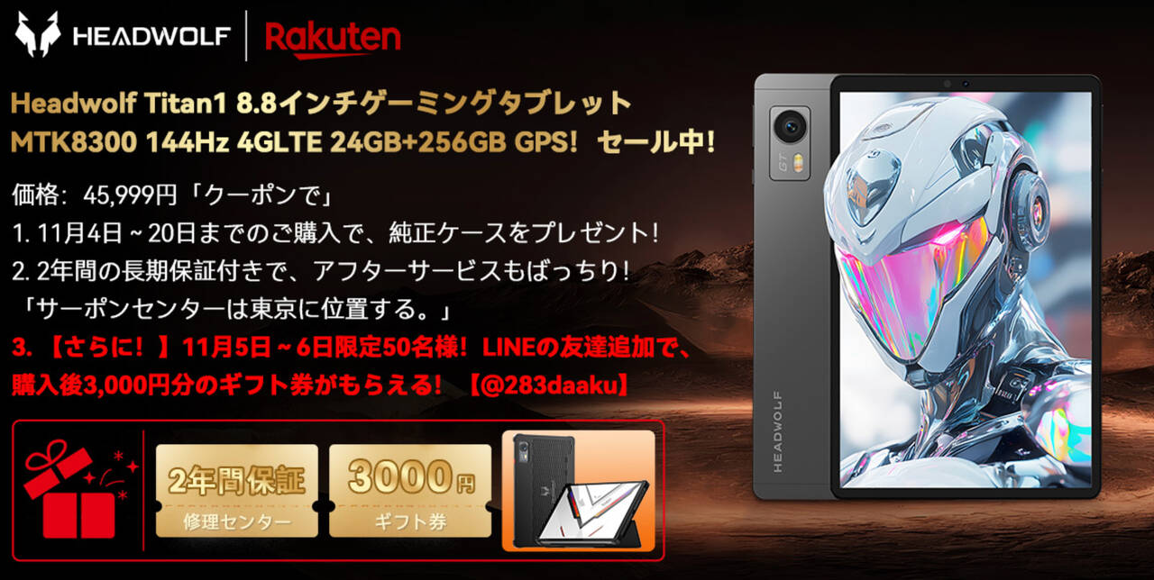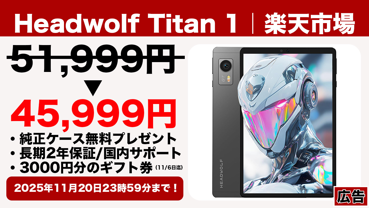 8.8型タブレット「Headwolf Titan 1」が楽天市場でセール開始!11月6日まで特別な特典あり