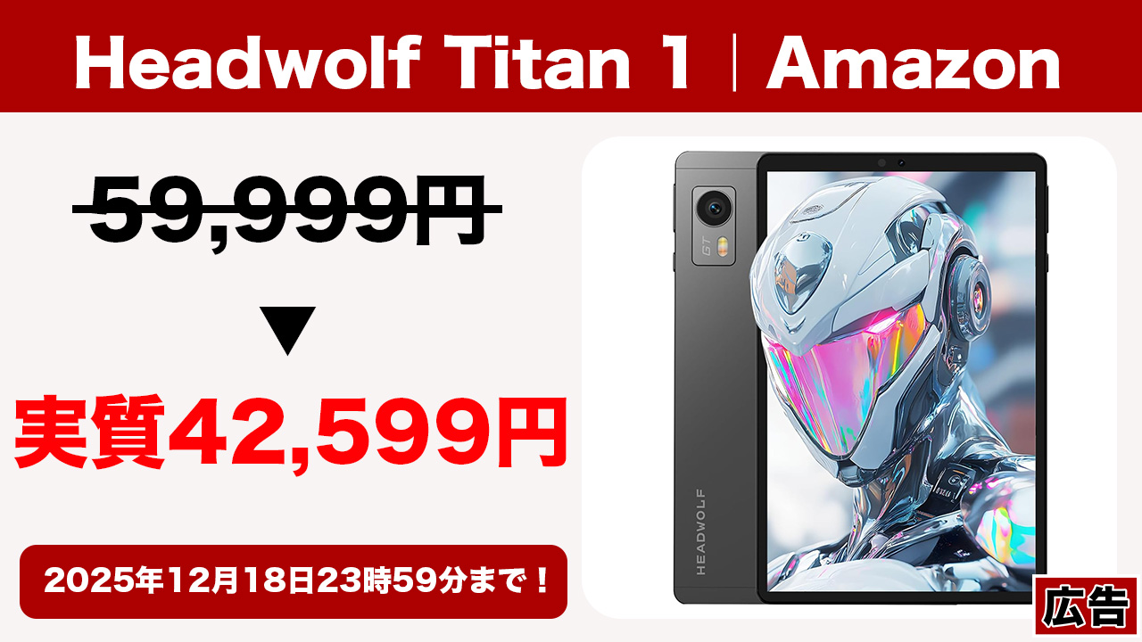 2025年10月下旬に発売してから売れに売れまくっている人気8型クラスタブレット「Headwolf Titan 1」がクリスマスギフトセールでオトクになっています。ただ期間が・・・2025年12月18日までとド短期ですので欲しい人はお急ぎ下さい。