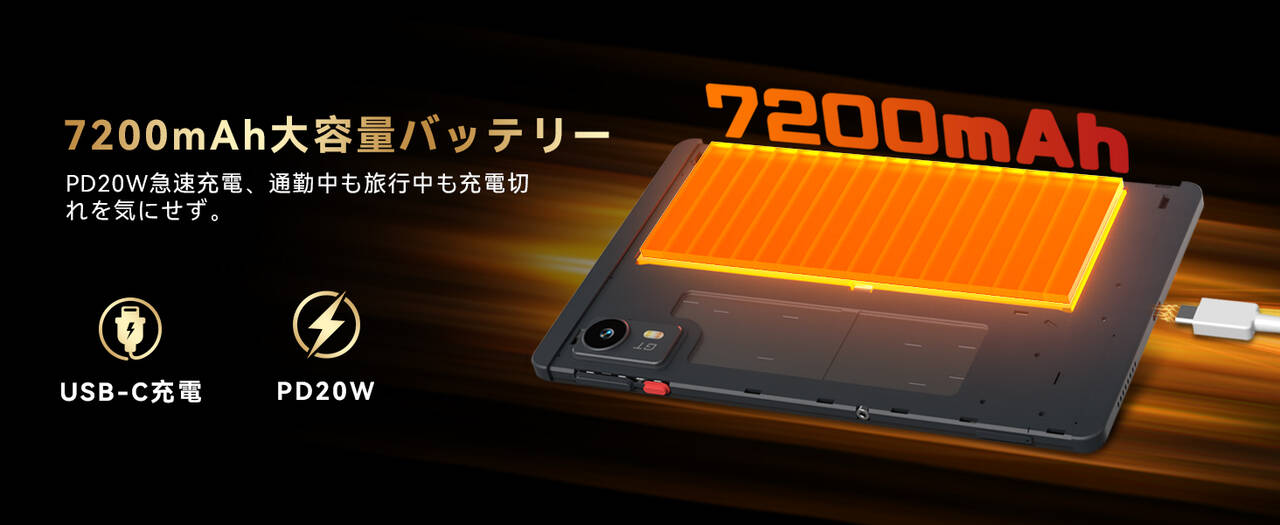 ▼バッテリー容量は8型タブレットとしては大容量の7,200mAhを搭載しています。このクラスが出始めたころは5,000mAhだったので随分と容量が増たもんです。嬉しい限り。↓