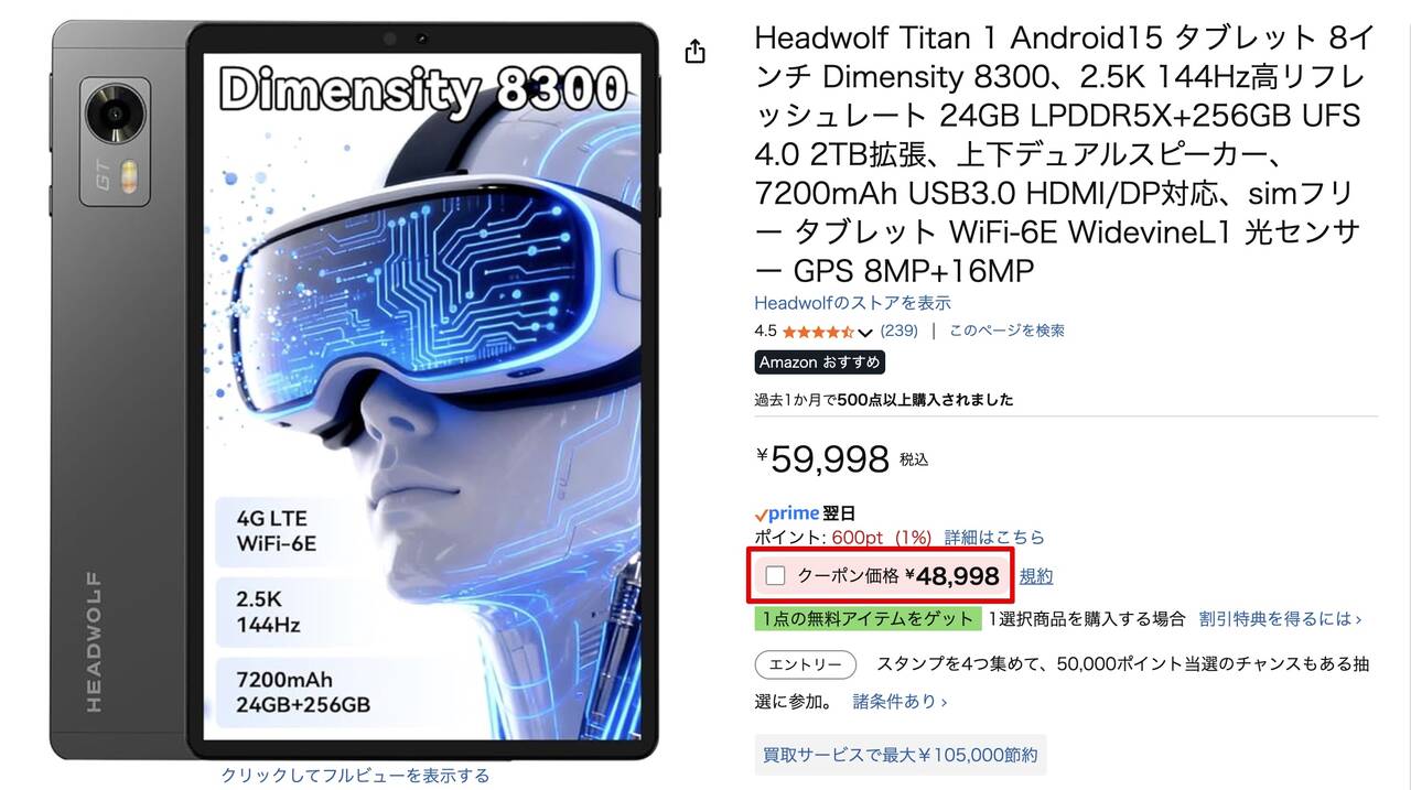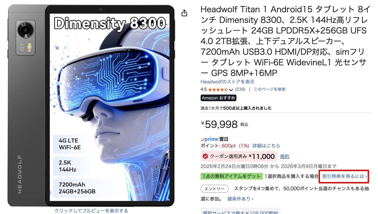 3月2日まで!8.8型タブレット「Headwolf Titan 1」が48,998円!先着60名は専用コントローラープレゼント!