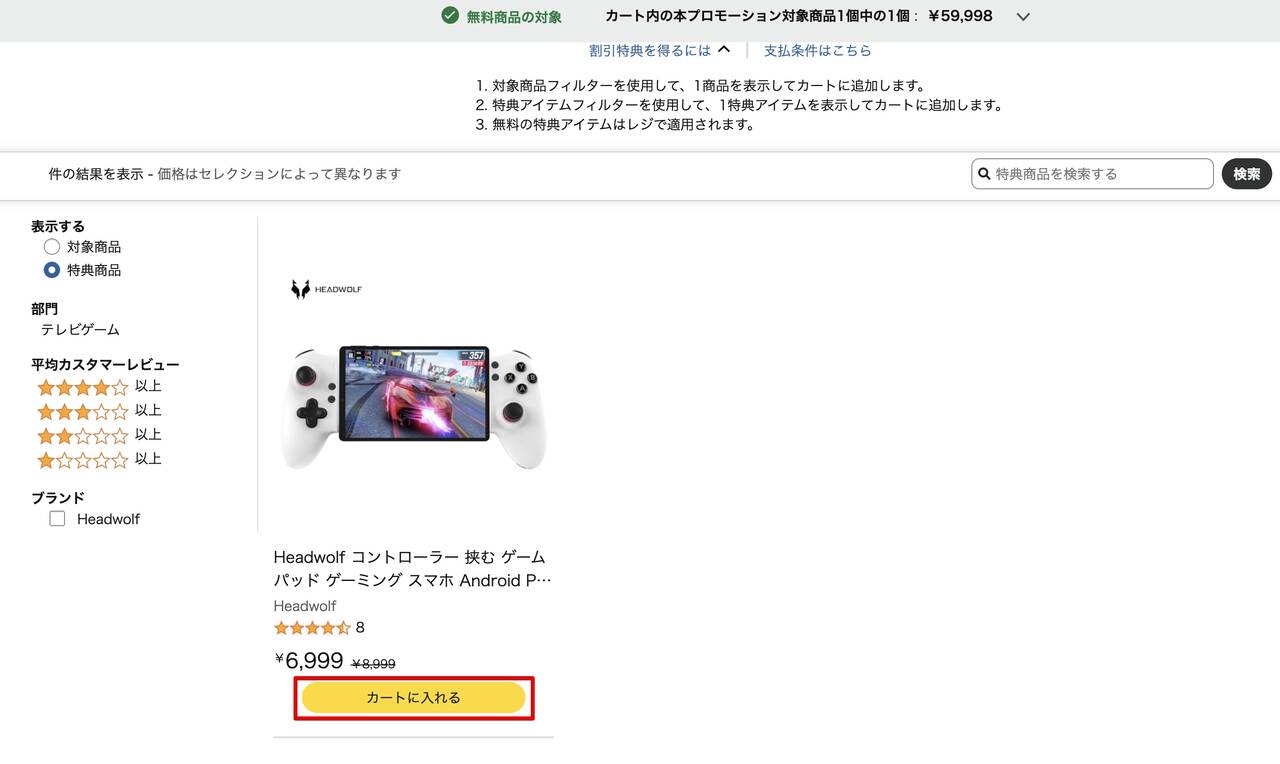 今回もセールはAmazonで開催されている。が、ちょっと専用コントローラーの貰い方がややこしいので画像付きで説明しておく。