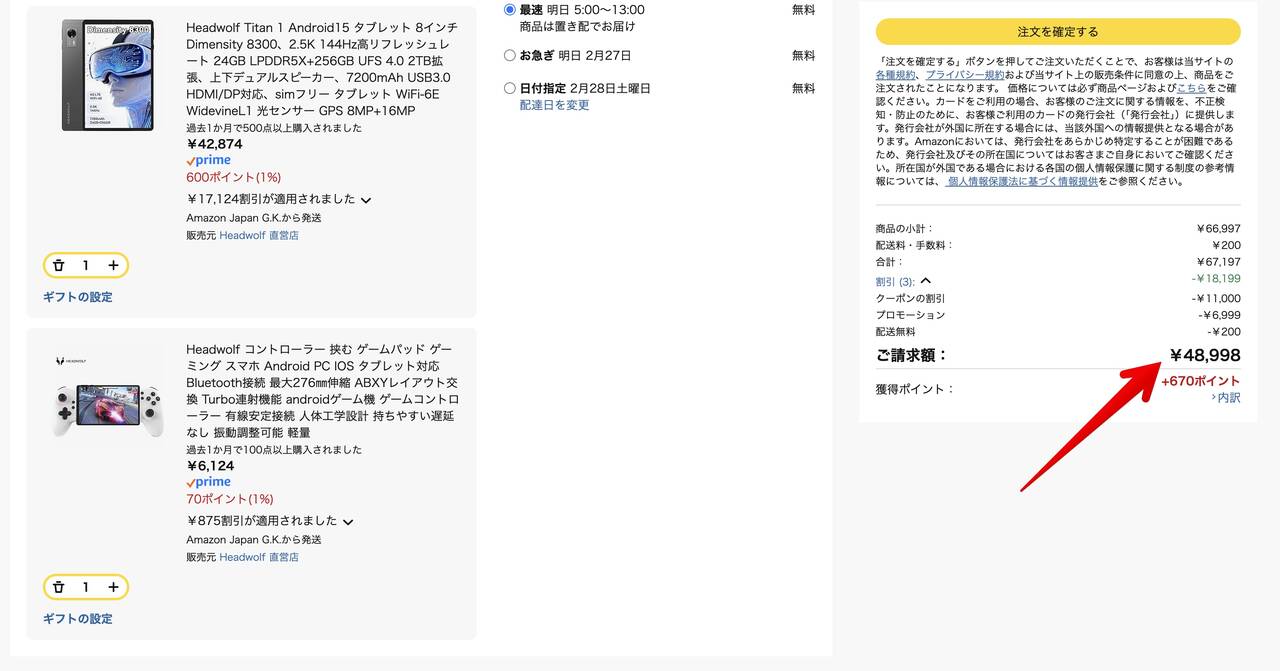 ▼レジへ進むと・・・専用コントローラー込みで48,998円になった!なおポイントも670PT貰える模様。↓