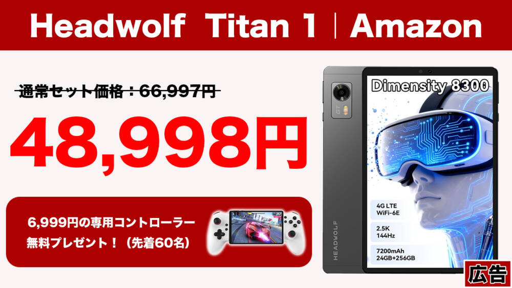 3月2日まで!8.8型タブレット「Headwolf Titan 1」が48,998円!先着60名は専用コントローラープレゼント!