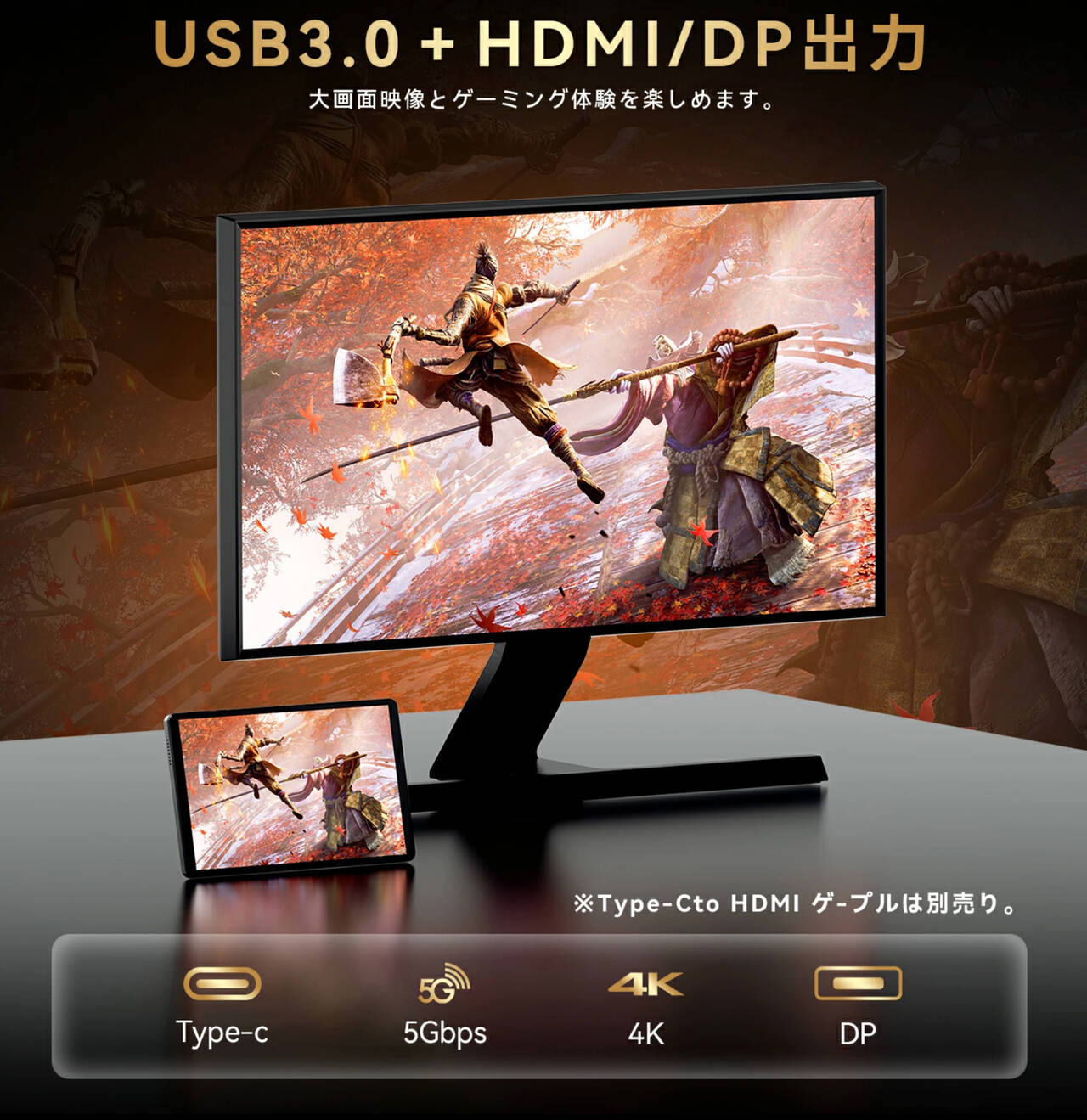 ミラーリングはほとんどの製品で出来ますが、Headwolf Titan 1はラグを感じない有線での外部映像出力に対応。