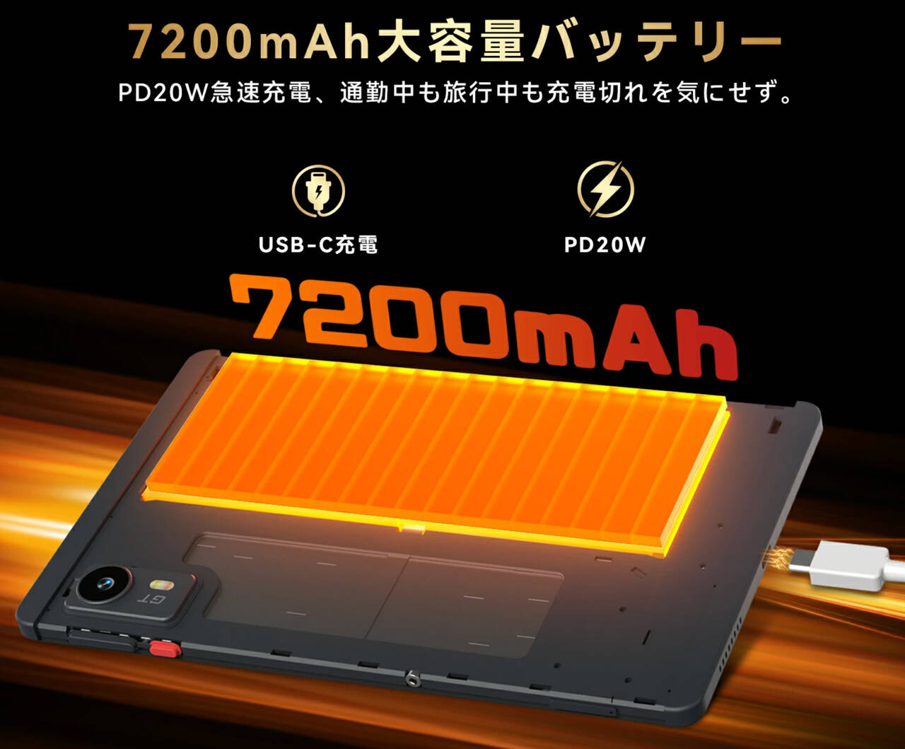 Headwolf FPad7/7 Proも6,500mAhバッテリーを搭載していて大容量な部類でしたが、なんとHeadwolf Titan 1では700mAhアップの7,200mAhに大増量。かなり電池持ちが良くなってそうです。