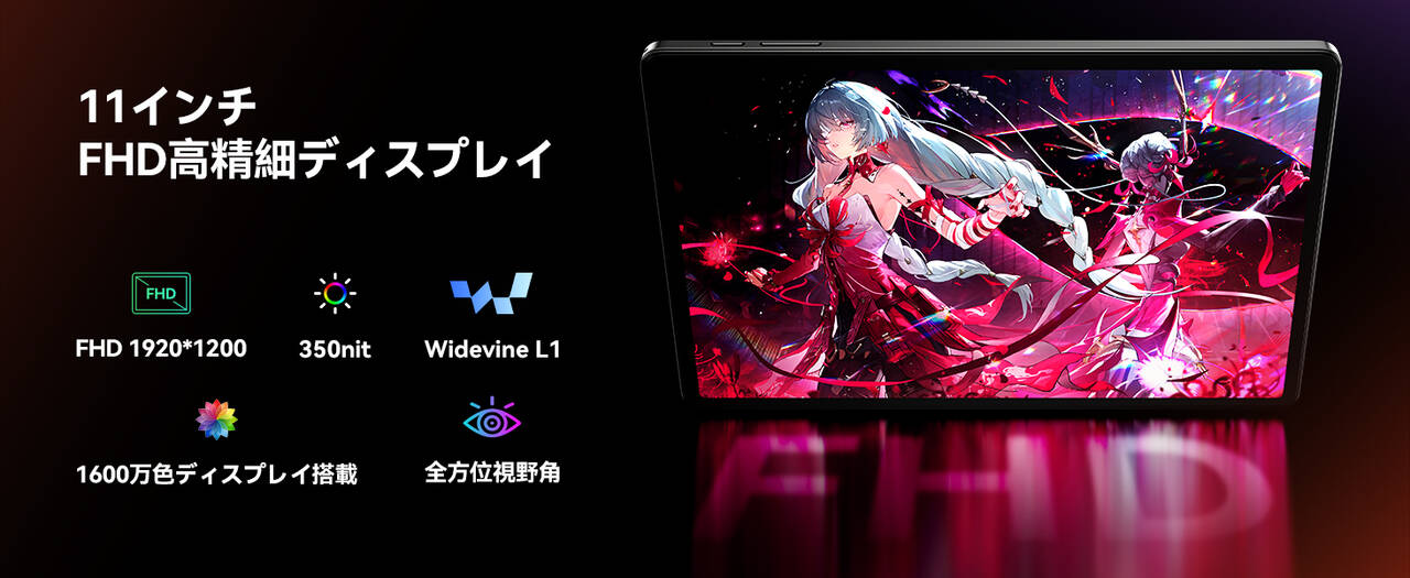 FHDクラスの解像度・Widevine L1・デュアルスピーカーの3点セットが揃っているので、動画視聴機としても良さげですねー!価格もお手頃なのでお子さんの動画視聴マシンとしても活躍しそう。