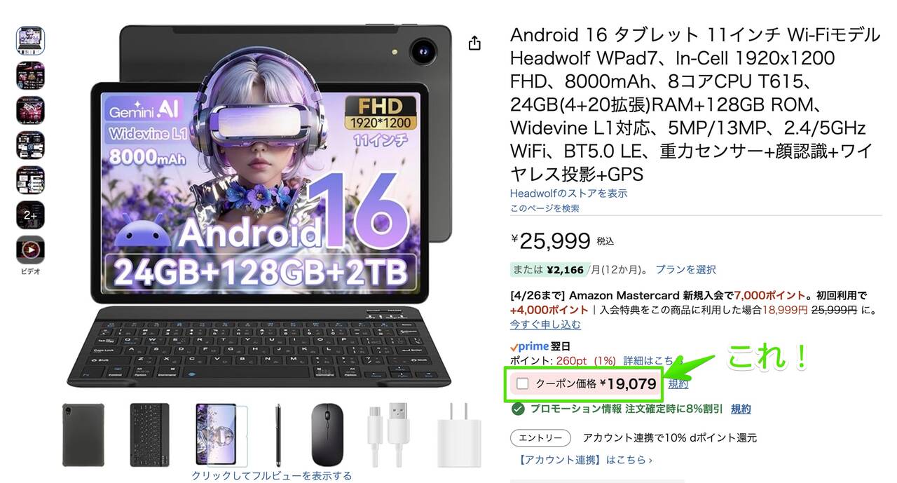 Headwolf WPad7は豪華アクセサリー7点セットで通常価格25,999円のところ4月24日までは16,999円で購入可能です!早い者勝ちということで価格を確認して16,999円であれば検討してみて下さい。