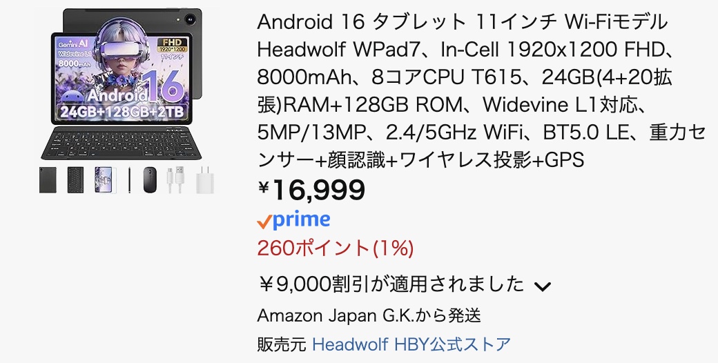Headwolfが11型のローエンドタブレット「Headwolf WPad7」がAmazonと楽天市場でセールを開始していますよ!キーボードやマウス、スタイラスペン、保護ケースなど豪華7点セットで16,999円。