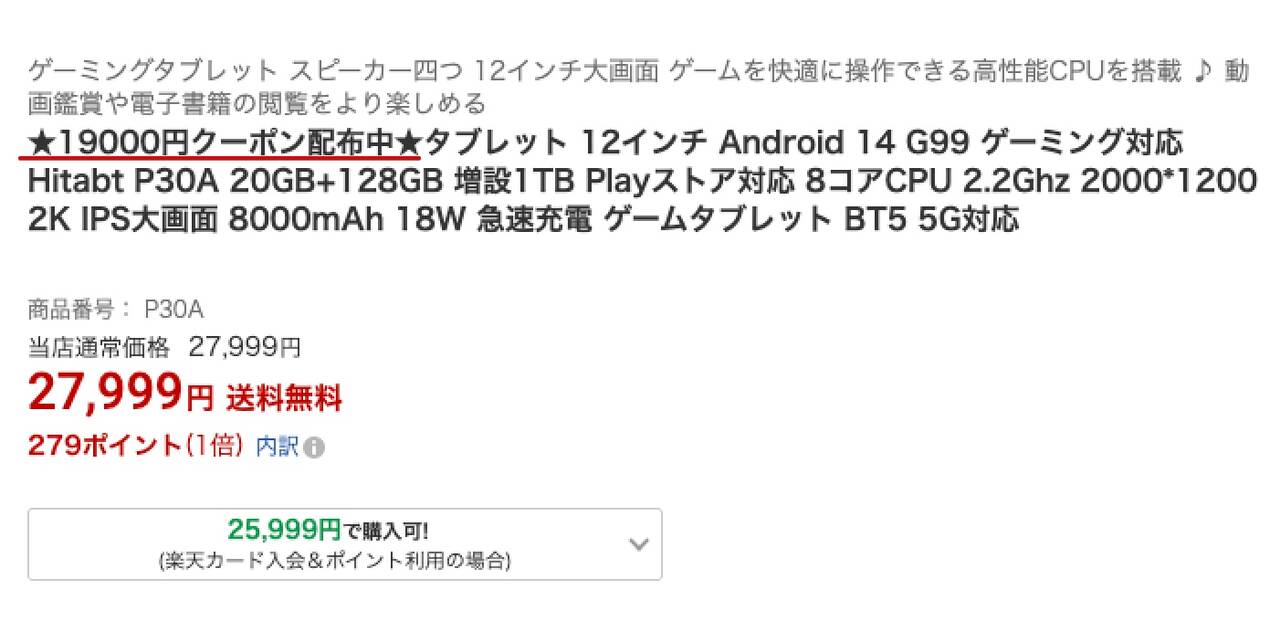Helio G99搭載の12型タブレットが楽天市場で8,999円だと?!なにかの間違えじゃ???