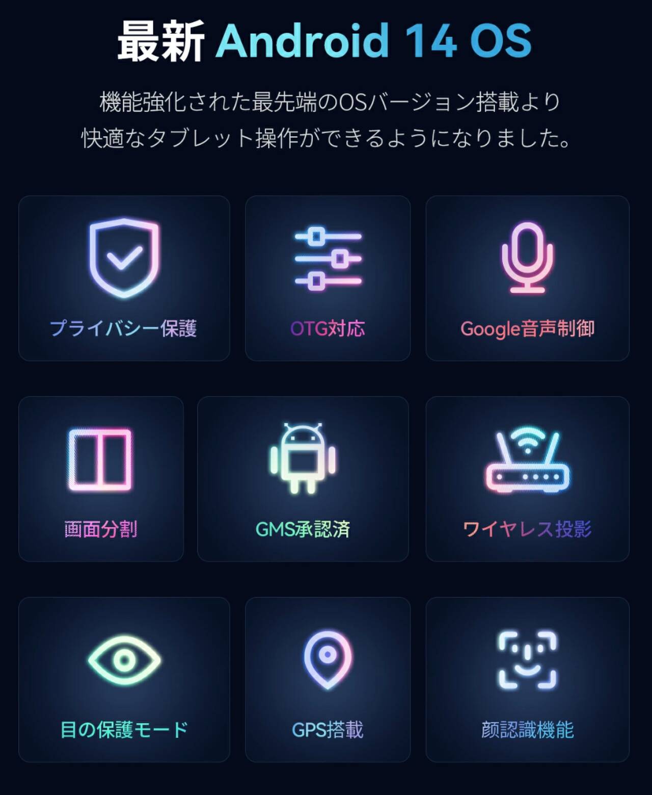 ▼(当時は)最新のAndroid 14を搭載しているという意味なのだろうか。ちな執筆時点だとAndroid 16が現行で17の足音も近づいている状況である。↓