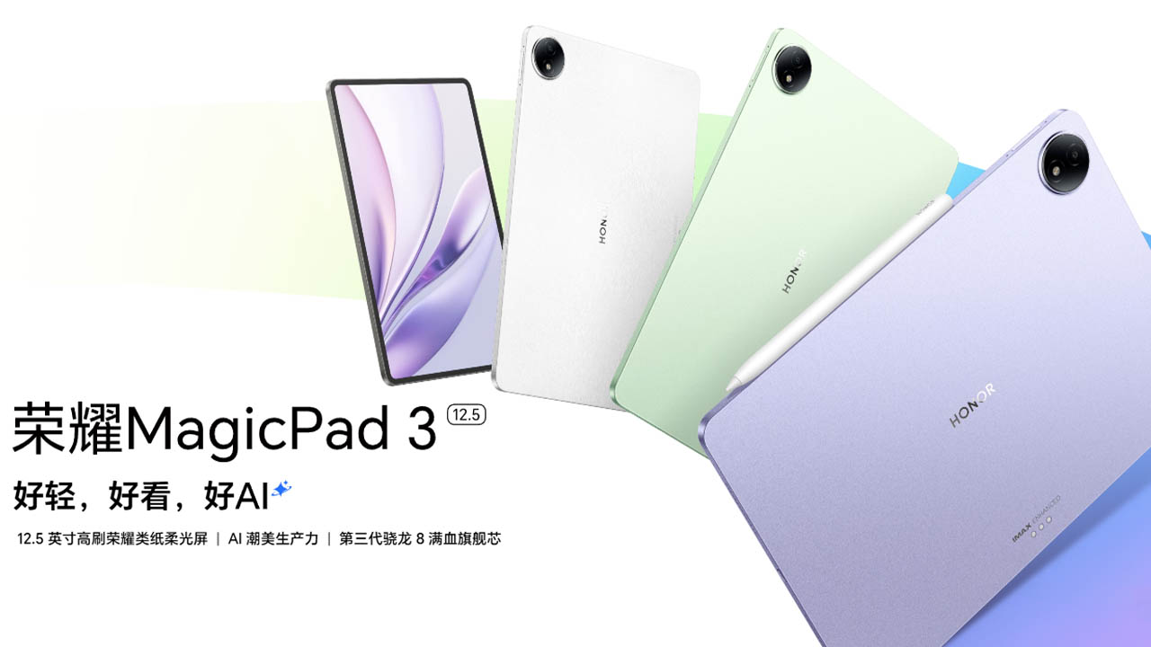 中国でHONORから「HONOR MagicPad 3 12.5」が発表されました!Snapdragon 8 Gen 3搭載の大型タブレットです。ペーパーマットディスプレイ版もあります!