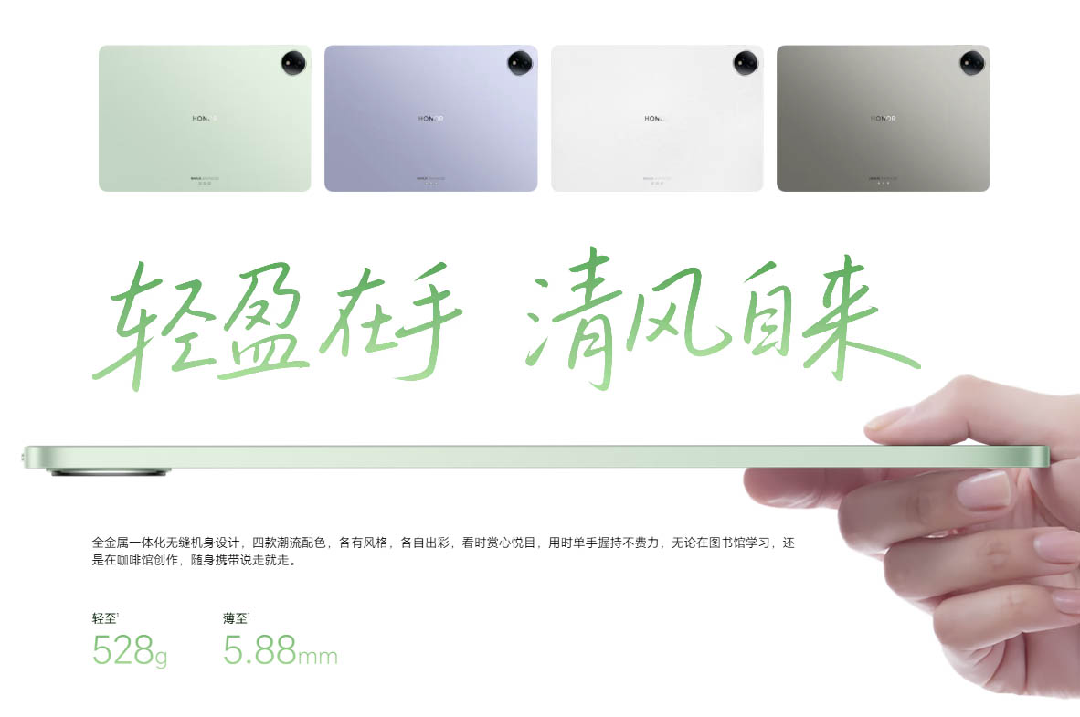▼カラーは放青松(グリーン系)、好运紫(パープル系)、月影白(ホワイト系)、星空灰(グレー系)の4色。重量は528gで、厚さは5.88mmです。↓