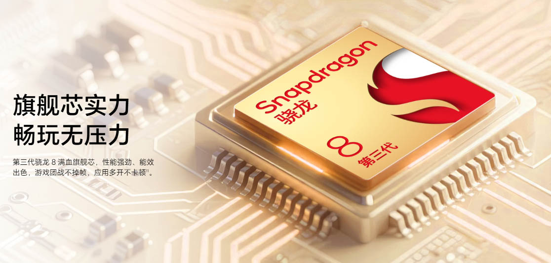 ▼SoCにはSnapdragon 8 Gen 3を搭載。AnTuTuスコア(v10)は200万点ほどのSoCで、普段遣いは非常に快適で、重量級のゲームも楽しめる性能があります。メモリ+ストレージ構成は8GB+256GB、12GB+256GB。↓