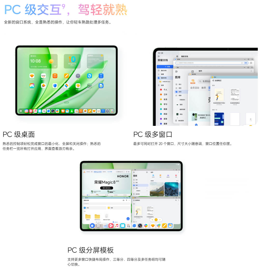 ▼OTAにて、Android 16ベースのMagicOS 10.0にアップグレードされます。PCライクなタスクバー、マルチウィンドウ、分割表示などに対応しています。↓