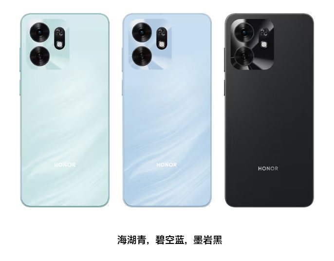 ▼HONOR Play 60Aのカラーはブルー、グリーン、ブラックの3色展開となっています。↓
