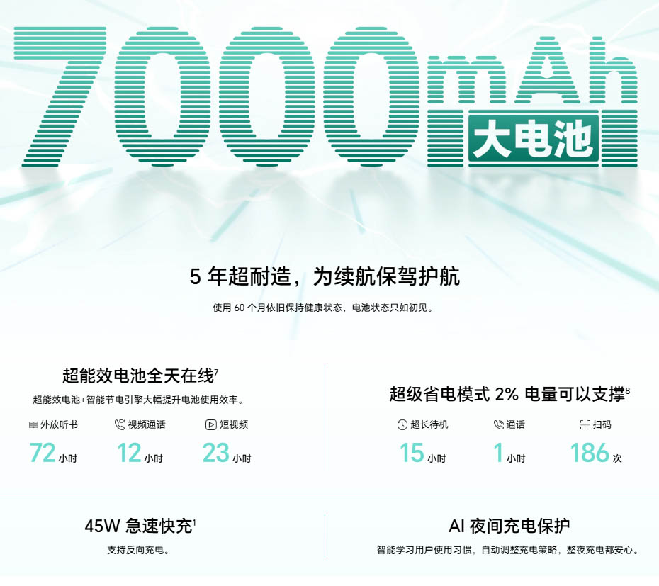 ▼バッテリー容量は7000mAh。45Wの急速充電に対応しています。↓