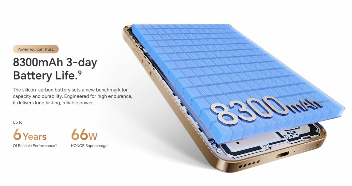 HONOR X9dのスペックまとめ!8300mAhバッテリー搭載でIP69Kの防水や2.5mからの落下衝撃に耐えるスマホ!