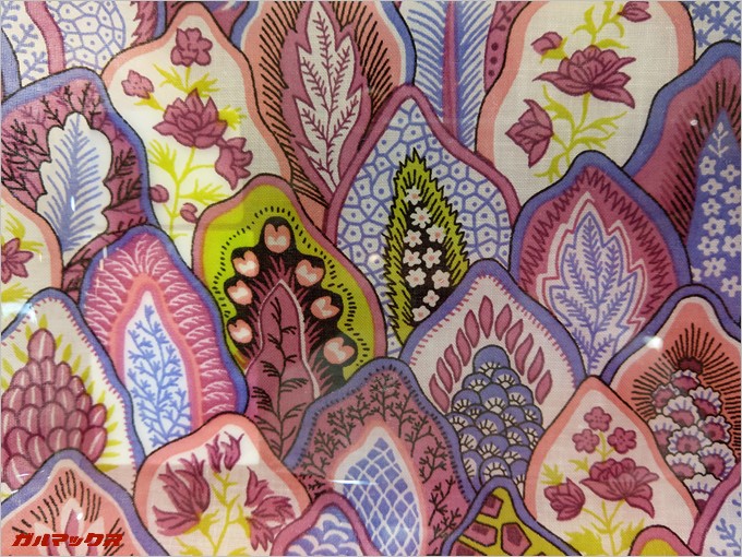 ▼平面柄に接写して撮影。被写体が平面的な場合の接写は端までボケなく撮影できる。つまり、先程のボケ味はレンズ性能を用いたボケ味でフィルター的なものでは無い。↓