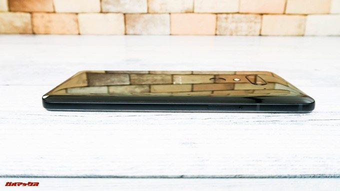 ▼厚みは8.7mmでハイエンド端末のなかでは分厚い部類です。背面は丸みを帯びた加工が施されているので手当たりは良く数値ほどの厚みは感じません。↓