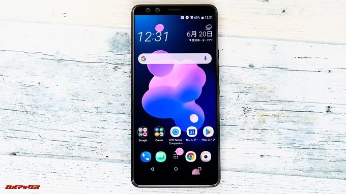 ▼HTC U12+のディスプレイは切りかけの無いタイプで画面は偏りのない中央配置となっています。横持ちでゲームや動画を視聴するときに扱いやすいですね。↓