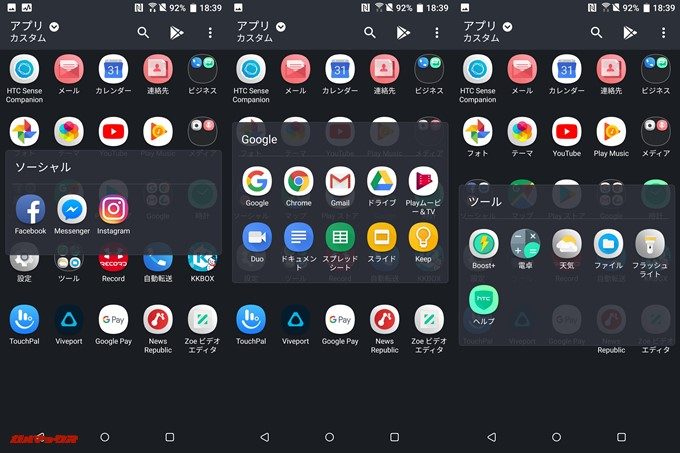 ▼初期アプリは色々入ってます。Google系、HTC系、その他色々と入っているので好みが分かれそう。↓
