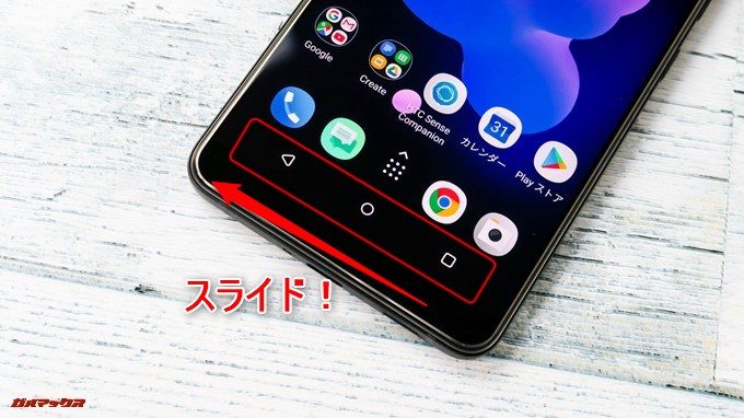 ▼まず標準状態で利用できる方法です。スクリーンショットを撮影したい画面でナビゲーションバーを左にスワイプすると、真ん中にスクリーンショットボタンが表示されるのでタップすることでスクリーンショット撮影が出来ます。↓