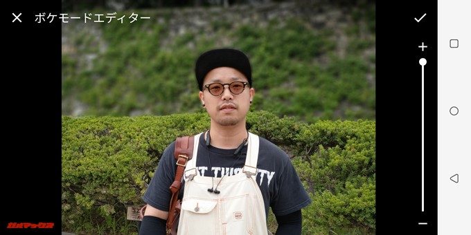 ▼ポートレート撮影では撮影後にボケ味の強度を変更可能でした。1枚目がボケ味最弱で2枚目がボケ味マックスです。↓