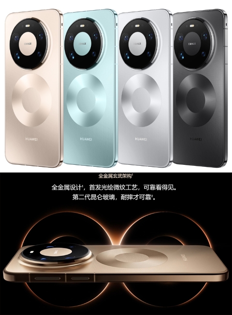 ▼カラーは极昼金(ゴールド系)、极光青(ブルー系)、极地银(シルバー系)、曜极夜黑(ブラック系)の4色。Mate 80の8なのか∞なのかは分かりませんがなかなか奇抜なデザインですね。↓