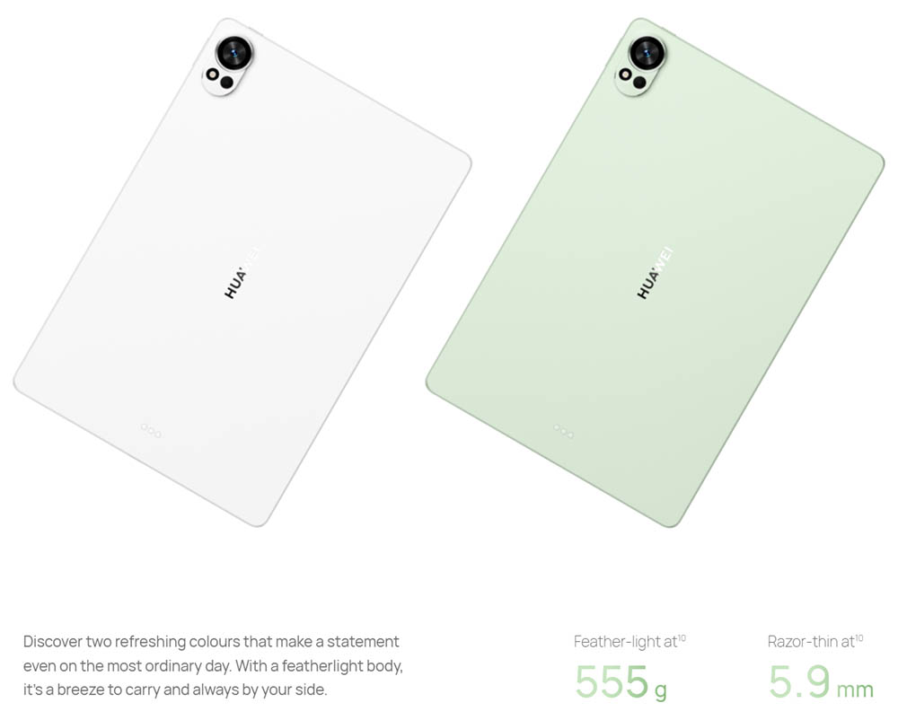 ▼カラーはWhite(ホワイト系)、Greenery(グリーン系)の2色。重量は555g、厚さは5.9mmと比較的薄型軽量です。↓