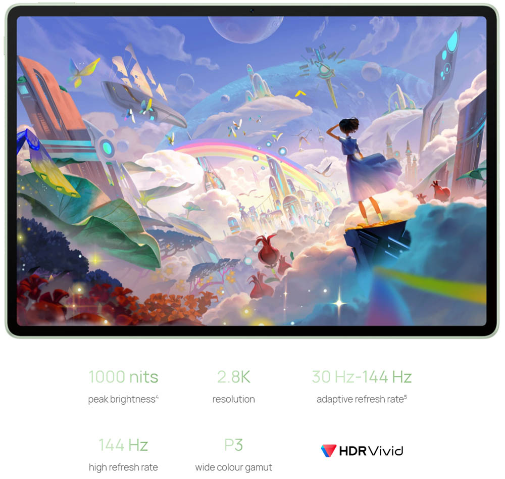 ▼ディスプレイサイズは12インチ。HUAWEI PaperMatte Displayを採用し、紙のような書き心地を実現しています。解像度は2800×1840と高解像度で、リフレッシュレートは30-144Hzの可変リフレッシュレートに対応。ピーク輝度は1000nits。↓