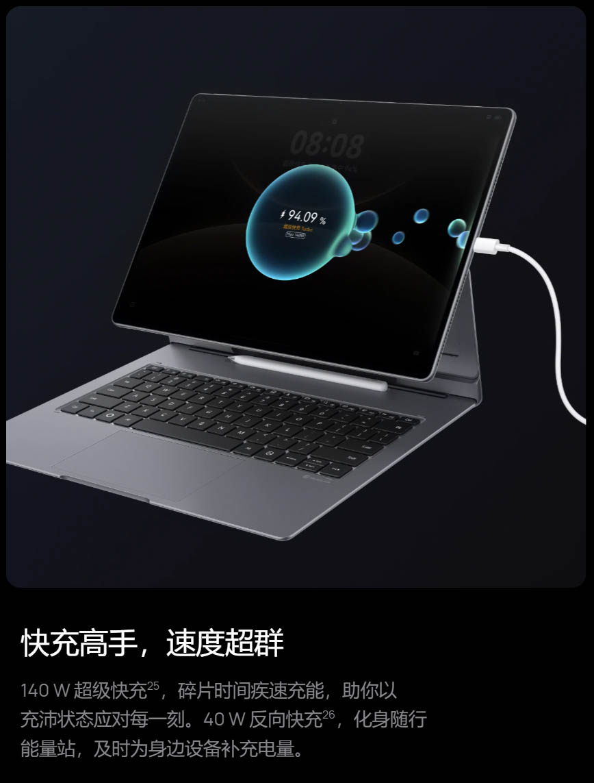 • 本体:100W充電+40W逆充電 / キーボード:65W充電