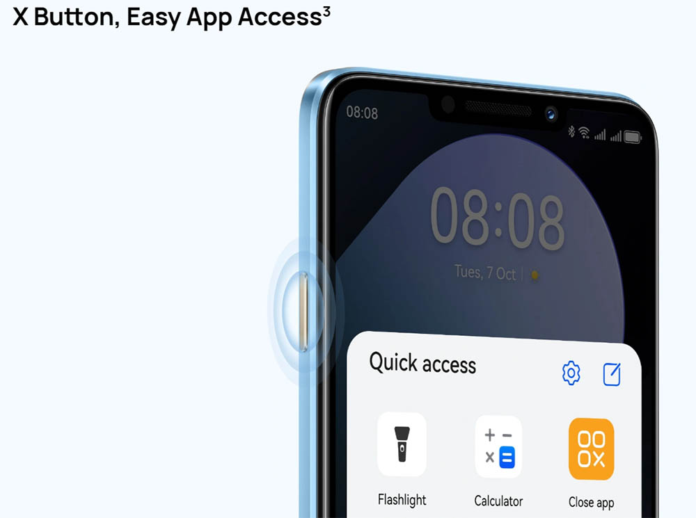 ▼本体左側面にはX Buttonというショートカットキーを搭載。アプリの起動や緊急連作先への通報といった機能を割り当てられています。↓