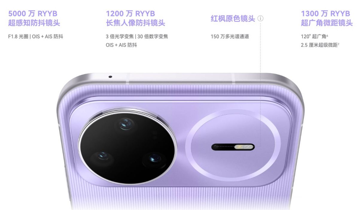 ▼リアカメラは50MP(広角、f/1.8)+13MP(超広角、f/2.2)+12MP(望遠、f/2.4)のトリプルカメラ構成に加え、15MPのマルチスペクトルセンサーを搭載しています。光学3倍ズームとデジタル30倍ズームに対応しています。↓