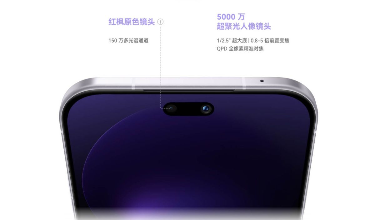 ▼フロントカメラは50MP(f/2.4、1/2.5″)に加え、15MPのマルチスペクトルセンサーを搭載しています。先代のデュアルフロントカメラは廃止され、マルチスペクトルカメラが新たに搭載されています。↓