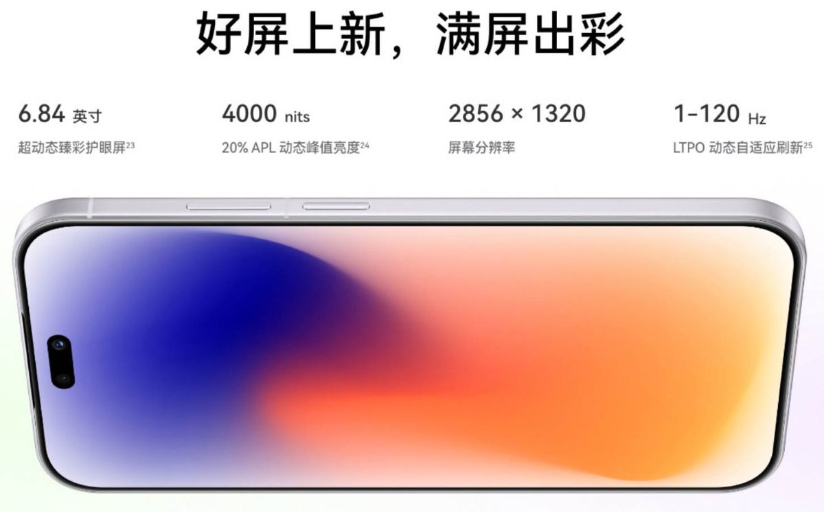 ▼ディスプレイは6.84インチの有機EL。解像度は2856×1320で、1-120Hzの可変リフレッシュレートに対応しています。↓