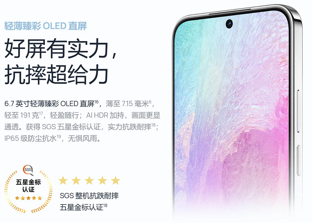 ▼カラーは冰晶蓝(系)、凝霜白(系)、羽砂黑(系)の3色。IP65の生活防水に対応しています。↓