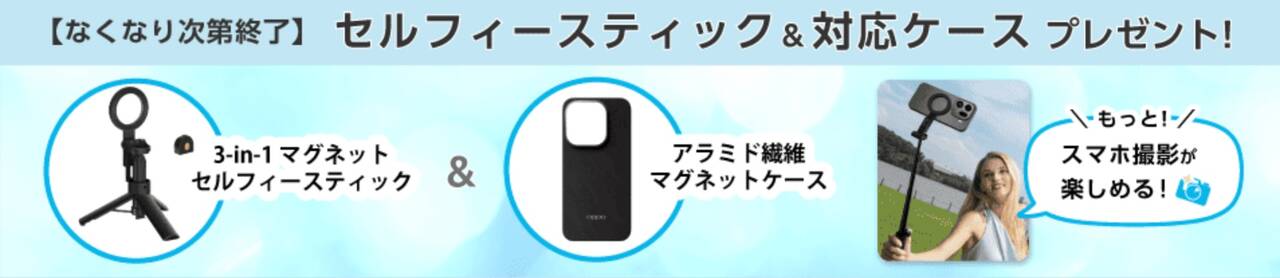 ▼IIJmioでの購入では「セルフィースティック」と「ケース」がプレゼントされるようです。なくなり次第終了なので欲しい人は早めに申し込みましょう。↓