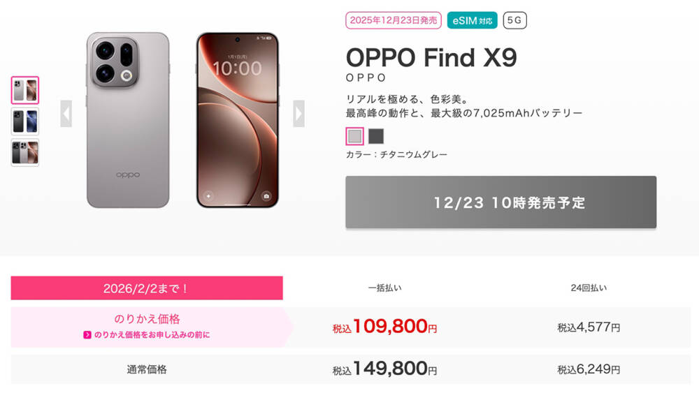 在庫切れ注意!OPPO Find X9がIIJmioで発売!MNPは4万円オフの109,800円