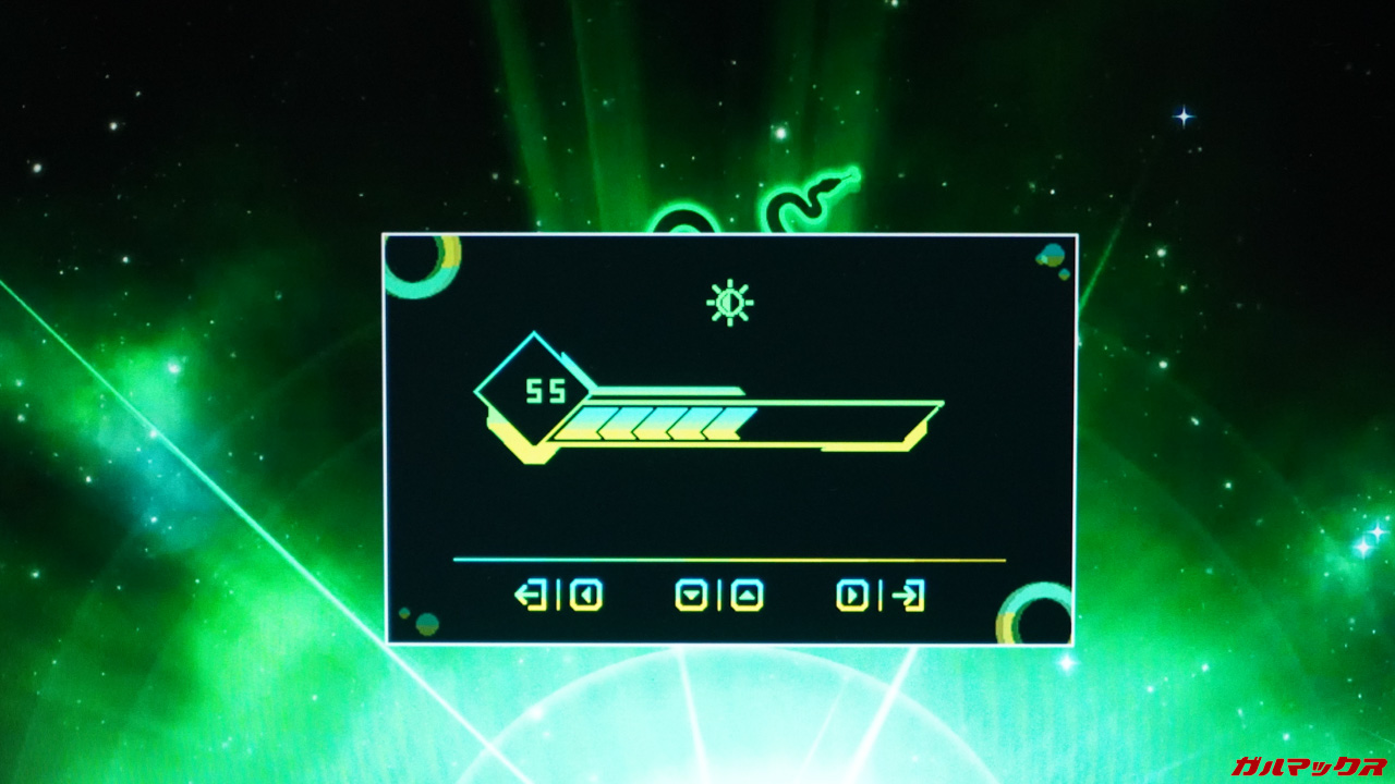 ホワイトのボディーカラーも相まりゲーミング感はINNOCN 27M2Vよりも強くなった印象です。もちろん設定から光り方やカラーを変更できるだけでなくオフにもできます。